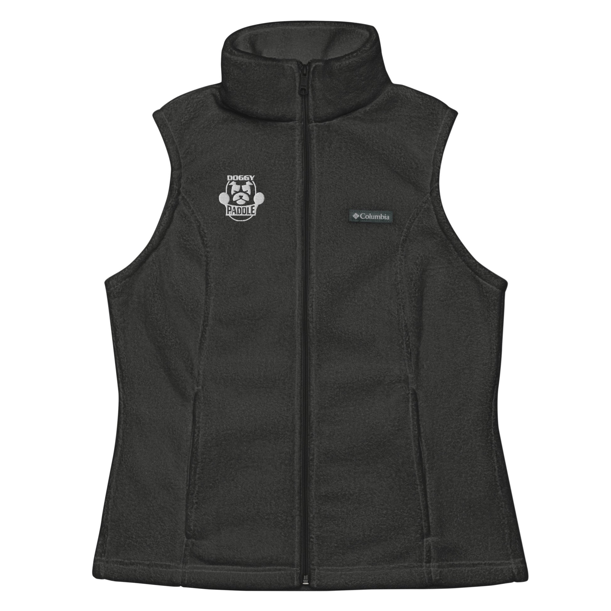 Stay warm and stylish in our Columbia fleece vest featuring our Doggy Paddle embroidered logo.